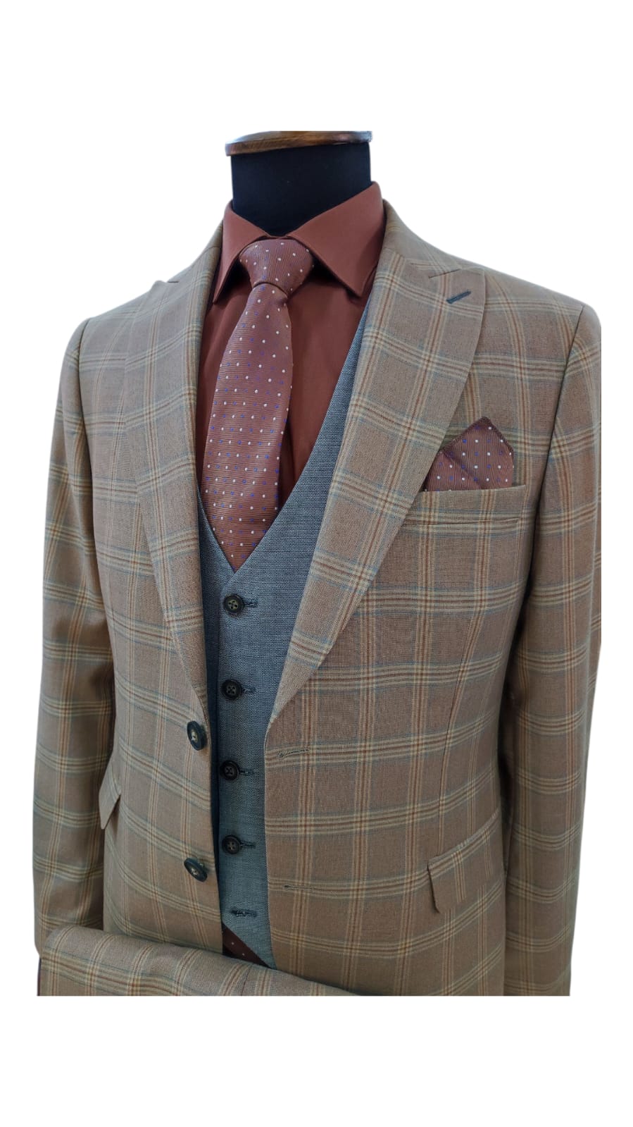 Costume Beige à Carreaux – 3 Pièces