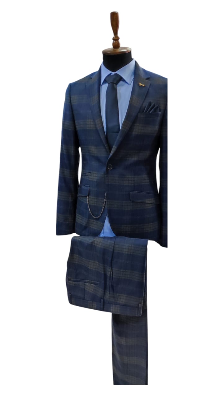 Costume Bleu Nuit à Carreaux – 2 Pièces